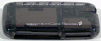 Название очень похоже на протестированный в прошлый раз 12 in 1, да и в упаковке присутствуют сходне мотивы и упоминание о существовании устройства с поддержкой 12-го типа карт. Основным функциональным отличием является наличие всего четырех слотов для карт, а не пяти — нет слота для Mini SD. C четырехслотовыми ридерами мы начали сталкиваться еще во времена господства формулы 6 in 1 (точнее, именно тогда они появились), так что по внешнему виду тут сложно сказать что-либо определенное. По информации от производителя 11 типов карт набраны так: CF I, CF II, Microdrive, SD, SMC, MMC, RS-MMC, MS, MS Pro, MS Duo. Вроде бы все так, однако про MS Duo честно сказано, что применение этих карт требует использования специального адаптера. Неизвестно, почему это не сказано про RS-MMC: их тоже следует использовать с адаптером, поскольку слот SD/MMC достаточно глубокий (в отличие, кстати, от моего любимого 12 in 1, где эти карты легко вставляются и извлекаются без необходимости в адаптере).
