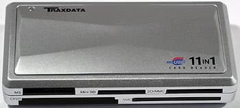 Единственное не безымянное устройство в сегодняшнем обзоре, стоящее, впрочем, дешевле того же All-In-Black 12 in 1 ;) Несколько непривычна формула для пятислотового накопителя, однако тут все просто: Traxdata тоже не желает платить лицензионные отчисления за поддержку xD-Picture, так что официально его не поддерживает ;) А то, что соответствующий слот в устройстве есть — это сборщики не доглядели; все равно он не работает. Что? Работает, говорите? Мы не в курсе — компания тут не при чем, поддержку данного типа карт никто не предусматривал, вот — у нас все типы карт перечислены, xD в списке нет ;) В общем, переводя с русского на русский, устройство отлично работает с xD-Picture, но подпольным образом :) Зато Mini SD поддерживается напрямую, да и RS-MMC можно без адаптера вставлять. Так что по функциональности накопитель полностью идентичен 12 in 1 Reader/Writer for Multi-Card. А что там со скоростью — сейчас разберемся.