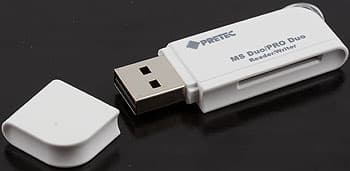 Компания Pretec начала участие в этой гонке достаточно давно, что неудивительно для одного из крупнейших игроков данного сегмента рынка. Достаточно вспомнить такие модели, ориентированные на работу с MMC и SD, как e-Disk, e-Disk II (оказавшийся в московской рознице едва ли не первым устройством с поддержкой SD 1.1 и MMC 4.x), или e-Disk II Plus (отличающийся от предыдущей модели наличием встроенной памяти, дабы конкурировать с флэшдрайвами). Однако на достигнутом фирма останавливаться не собирается, и сегодня мы займемся изучением Mobile Reader, рассчитанного на поддержку совсем другого формата карт, — Memory Stick Duo и Duo Pro. Ориентация на уменьшенный размер вполне логична — оригинальный Memory Stick был чересчур велик для многих применений (особенно для мобильных телефонов), так что сегодня Duo-модификация используется существенно чаще, а некоторые производители техники уже начали переход на еще более компактные MS Micro.