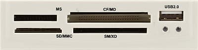 Видим некогда стандартные простые четыре «дырки» для карт. Чем это плохо? А тем, что модификации карт уменьшенного размера можно использовать исключительно совместно с адаптерами. Более того — официально это касается Memory Stick Duo, хотя на практике, к счастью, последняя карта подошла к слоту и «сама по себе». Сравните это с недавно рассмотренным Pretec 20 in 1, где адаптер нужен только для M2. Добавьте поддержку последним SDHC-карт, чем наш сегодняшний герой похвастаться не может. Итог? 20 заметно больше, нежели 52. Таким образом, неоднократно озвученный вывод — выбирая картовод, не стоит обращать внимания на объявленное количество поддерживаемых форматов. Ни о чем оно не говорит. Впрочем, понятно, что в мире, где фотоаппараты выбираются по мегапикселям, а видеокарты — по объему установленной памяти, производителям картоводов приходится завышать указанные цифры каким угодно образом. Соответственно, ругать тех, кто так поступает, не имеет смысла — можно только похвалить тех, кто делает наоборот. Да и покупателей не перевоспитаешь. Но хотя бы нашим читателям нужно каждый раз объяснять эти трюки — если хоть кому-то это поможет, значит, не жалко места в статье :)