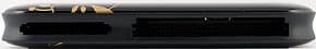 Как и АМ300, АМ250 весьма компактен. Впрочем, сразу на это внимания не обращаешь, поскольку длина и ширина у него вполне типичны для большинства мультиформатников (89,3×55,6 мм), но толщина крайне невелика (12,6 мм). По массе он практически идентичен АМ300 (49 грамм против 50). С учетом скругленных углов, устройство выглядит достаточно эффектно. Стильности добавляет и окраска — в отличие от большинства скучных однотонных картоводов, АМ250 вызывает ассоциации с деревянной посудой, расписанной «под Хохлому» :)