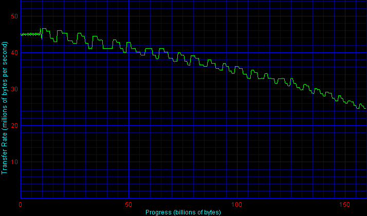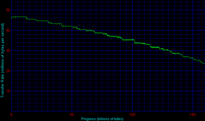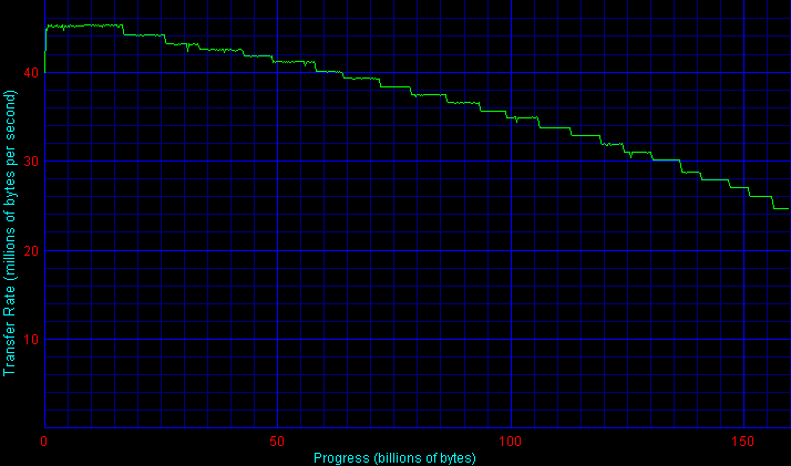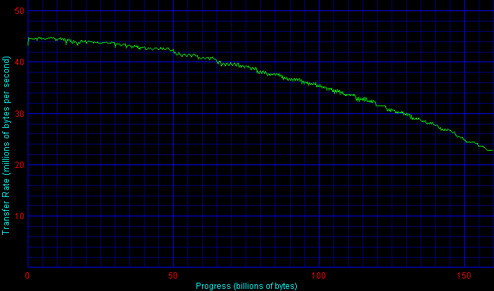 Вместе с тем, диски Seagate Momentus 5400.3, произведенные с разницей в год, также демонстрируют заметный прирост линейной скорости относительно друг друга. Так что применение адаптивного форматирования вкупе с отлаженной технологий PMR способно со временем улучшать скоростные показатели накопителей в рамках одной модели/серии. Здесь также интересно отметить, что 160-гигабайтные пятитысячники практически догнали семитысячников прошлого поколения по скорости линейного доступа, и лишь Hitachi 7K100 еще имеет еще некоторую фору.