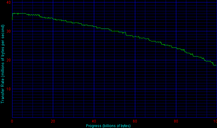 Испытания проводились под управлением операционной системы MS Windows XP Professional SP1. Винчестеры тестировались, как неразмеченными на разделы (в тестах Intel Iometer, H2Benchw и AIDA32), так и разбивались и форматировались штатными средствами операционной системы в зависимости от вида теста: одним NTFS -разделом максимально возможной емкости для тестов среднего времени доступа и снятия графика скорости чтения в WinBench 99 и двумя равновеликими разделами NTFS или FAT32 для остальных тестов (WinBench Disk WinMark 99, копирования файлов различными паттернами, теста ATTO Disk Benchmark, теста многопотокового чтения/записи Nbench 2.4 и теста быстродействия дисков в программе Adobe Photoshop). Разделы NTFS имели размер в половину объема диска каждый (то есть второй раздел начинался ровно со второй половины диска), а разделы FAT32 имели размер по 32768 Мбайт, причем первый начинался в начале диска (на самых «быстрых» дорожках), а второй — ровно со второй половины диска. Размер кластеров NTFS и FAT32 выбирался по умолчанию — 4 и 16 Кбайт соответственно.