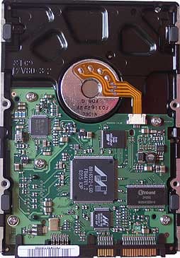 Это мост (bridge) Parallel to Serial ATA, знакомый нам по диску WD360GD «Raptor» (правда, вторая и третья строки маркировки отличаются). Он-то и обеспечивает последовательный интерфейс.