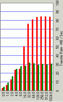 При имитации чтения и записи крупных файлов (типа mp3, видео, больших фотографий и пр.) Hitachi 5K80 и Seagate Momentus снова оставляют самсунгов позади, причем даже «четырехтысячник» (4200 об./мин.) IBM 80GN способен конкурировать по скорости с ними! В остальном картина внутри серии M40 та же, что и в «серверных» паттернах, просто чуть менее выражена.