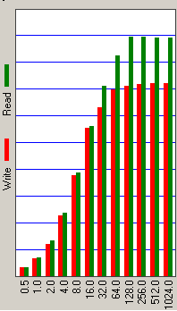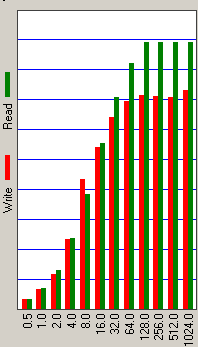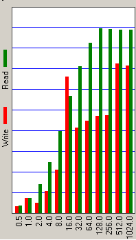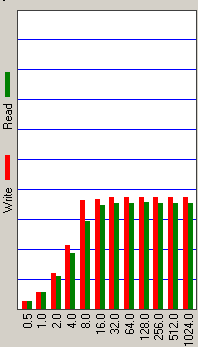 Дополнительную пищу для размышлений дает сопоставление среднего времени доступа, измеренного под Windows для чтения и записи (с учетом кэширования диском). По тому, насколько меньше оказывается среднее время доступа при записи, можно попытаться судить, в частности, об эффективности работы алгоритмов отложенной записи и кэширования записываемых данных в буфере диска. В данном случае мы демонстрируем результаты теста H2benchW, хотя аналогичные данные получены и в других программах (например, Iometer).