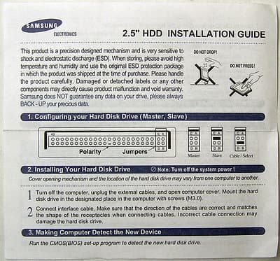 Интересно, что диск поставляется с сопроводительной документацией: небольшой листочек поможет неопытному пользователю установить и сконфигурировать накопитель.