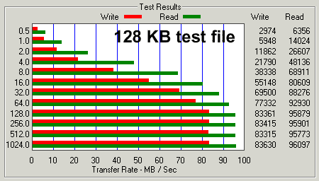 Честно говоря, я не очень доверяю этим WinBench-тестам — уж очень велико у производителей дисков и контроллеров искушение оптимизировать свои микропрограммы с целью получения лучшей производительности именно в данных самых популярных и маркетингово-значимых бенчмарках от Ziff Davis/PC Magazine. Так что привожу я их для порядка, но не рекомендую очень уж на них ориентироваться в своих выводах.