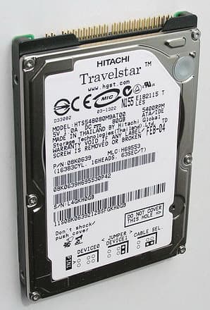 Третья компания, представленная в этом обзоре мобильных дисков, — конечно, Hitachi Global Storage Technologies, наследница изобретателя «винчестеров» — IBM. От HGST конкуренцию пятитысячникам Samsung и Seagate составит представитель того же поколения дисков — серии Travelstar 5K80 — диск HTS 548080M9AT00 со скоростью вращения 5400 об./мин., 8-мегабайтным буфером и 40-гигабайтными пластинами, но объемом 80 Гбайт. Мы в своих обзорах его еще не рассматривали, тем интереснее будет с ним познакомиться на практике.