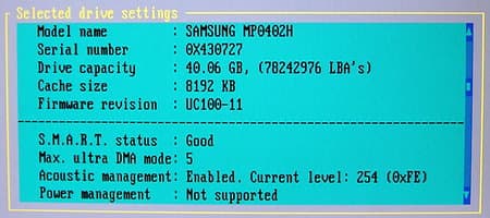 | Samsung SpinPoint M40 MP0402H | Seagate Momentus ST94811A | Hitachi 5K80 HTS548080M9AT00 | IBM/Hitachi IC25N040ATMR04 |