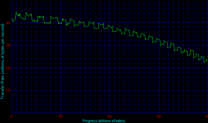 По максимальной и средней скорости линейного доступа Samsung HD080HJ оказался заметно лучше своих предшественников и обогнал всех конкурентов на 80-гигабайтных пластинах, хотя прежние 80-ки Samsung высокой скоростью похвастать не могли (а они, кстати, до сих пор активно продаются в магазинах).