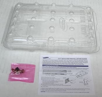 Накопители Samsung традиционно поставляются в пластиковой ударозащитной упаковке и комплектуются простеньким руководством по установке и, внимание, набором крепежных винтов, а также перемычкой на pin-джампер.