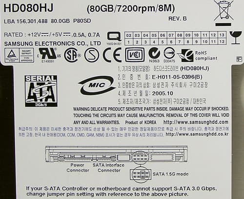 - Samsung SpinPoint P80 SP0812C (Serial ATA 1.0, 8 Мбайт),