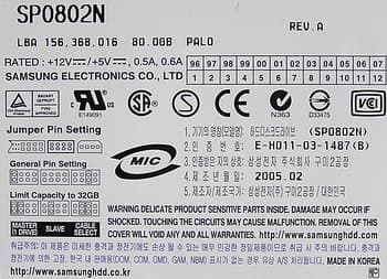 - Samsung SpinPoint P80 SP0802N (UATA/133, 2 Мбайт),