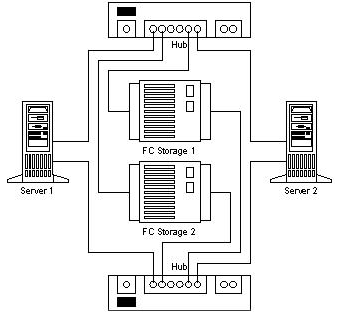 Loop или Hub FC-AL — для подсоединения множественных сторедж устройств к нескольким хостам. При организации двойного кольца увеличивается быстродействие и отказоустойчивость системы.