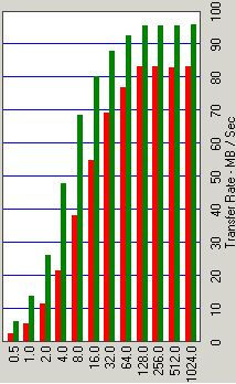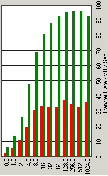 По результатам этого теста можно констатировать, что разработчики все-таки потрудились над firmware нового диска — он стал заметно лучше работать и самыми мелкими блоками, и кэшировать за запись файлы объемом вплоть до 2 Мбайт, чем его предшественник. Вместе с тем, существенные недостатки оптимизации микропрограммы дисков Momentus все еще остаются: например, по сравнению с лидерами (Hitachi и др.) отвратительно (другого слова я не подберу!) кэшируются при чтении файлы от 1 Мбайт и выше (да и с более мелкими файлами есть определенные проблемы), заметно страдает и кэширование записи крупных (выше 1 Мбайт) файлов.