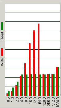 Дополнительную информацию дает сопоставление среднего времени доступа, измеренного отдельно для чтения и записи, — по тому, как падает среднее время доступа при записи относительно чтения, можно судить, в частности, об эффективности работы алгоритмов отложенной записи и кэширования записываемых данных в буфере диска.
