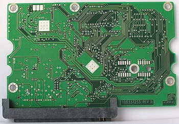 С обратной стороны печатные платы 400-гигабайтных моделей Seagate серий NL35 и Barracuda 7200.8 также идентичны и даже имеют один и тот же номер и ревизию (в левом нижнем углу на фото).