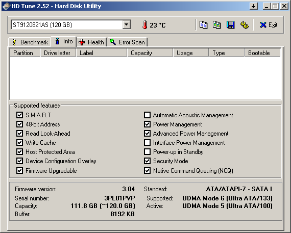 С точки зрения поддерживаемых функций различия между моделями серии с разными интерфейсами тоже минимальны: SATA-вариант поддерживает NCQ. К сожалению, эти диски не поддерживают управление акустикой поиска (со стороны пользователя) и некоторые функции управления электропитанием, что пригодилось бы для ноутбучных дисков.