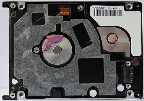 Так выглядит «гермоблок» диска HM120JC с обратной стороны (со снятой печатной платой контроллера):
