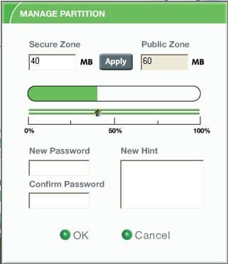 а также имеет удобный менеджер партиций с разграничением прав доступа (к сожалению, в текущей версии утилиты создание Secure Zone с паролем для доступа делает затруднительным использование Pocket-драйва как загрузочного; возможно, проблема будет исправлена позднее).