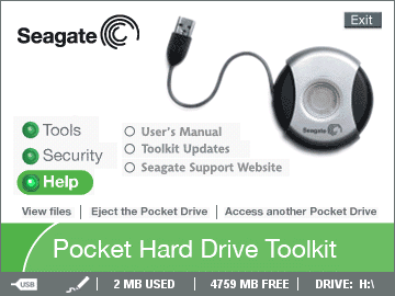 Утилита Seagate ToolKit из комплекта поставки накопителя имеет простое меню с подпунктами