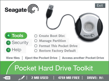 и позволяет форматировать Pocket Drive и делать его загрузочным,