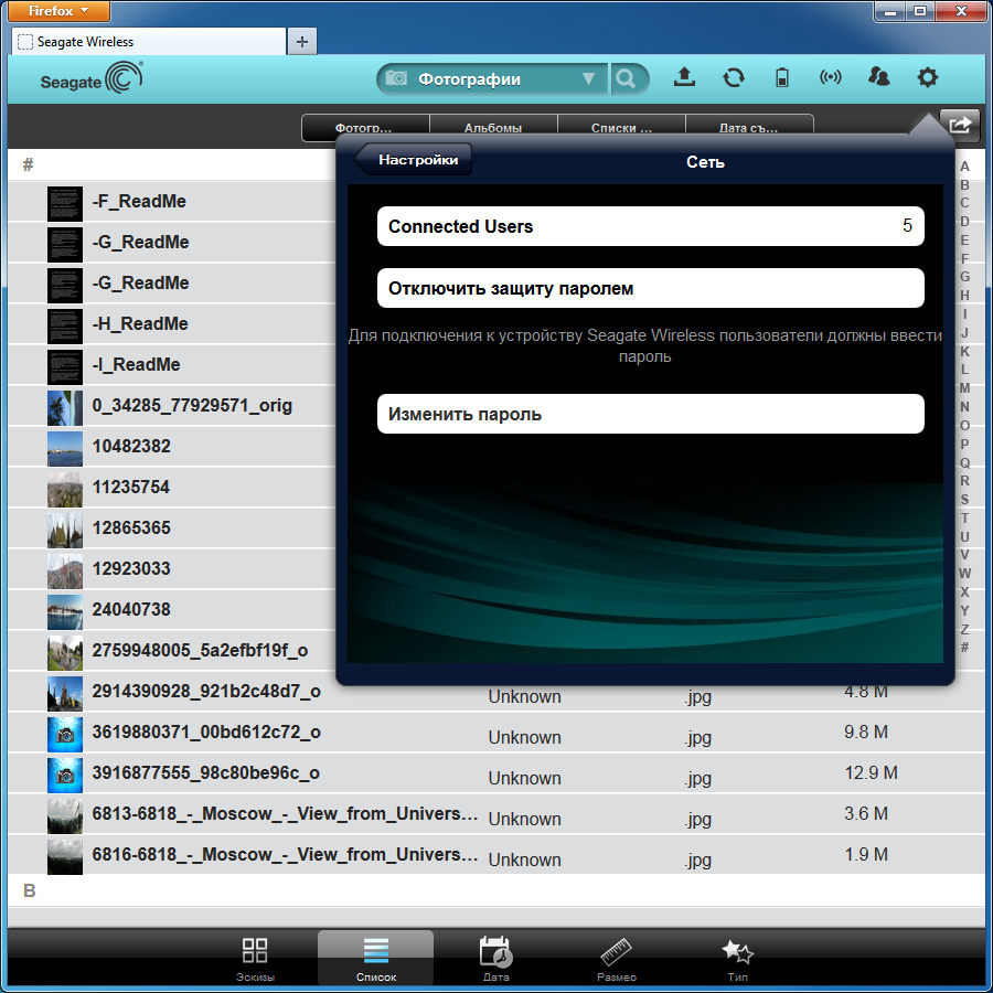 По-умолчанию накопитель использует открытую сеть, к которой можно подключиться без ввода паролей. При необходимости этот и другие параметры можно изменить через Web-интерфейс или программу для смартфона. По внешнему виду и возможностям эти варианты очень похожи. Посмотрим на них подробнее.
