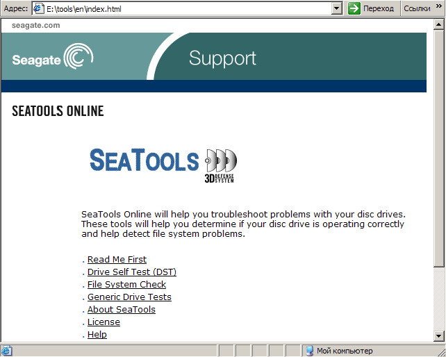 Дополнительно на CD с ПО содержится набор диагностических утилит SeaTools от Ontrack (рис. 9), осуществлять поиск которых, как и драйверов для Win98 и документации в недрах диска, вам придётся самостоятельно — ссылки на всё, кроме ПО от BounceBack, в меню автозапуска отсутствуют.