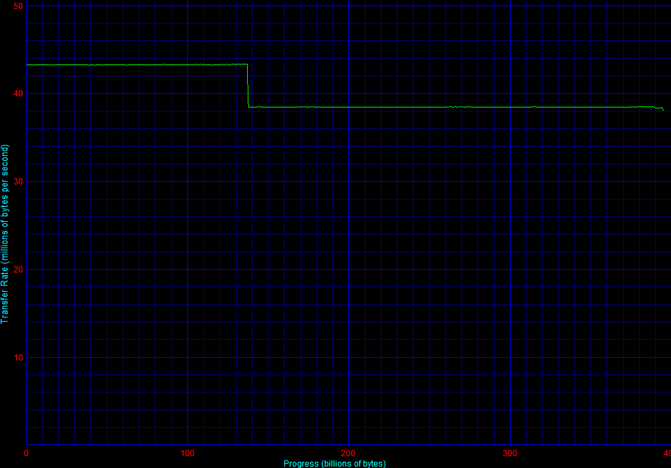 USB заметно уступает при чтении, а FW существенно замедляется при записи — почти до уровня USB 2.0. Отметим также, что скорость записи здесь везде получается ниже скорости последовательного чтения.
