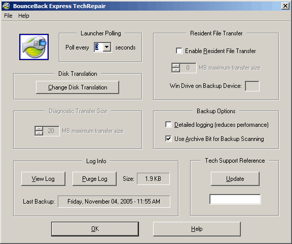 - BounceBack TechRepair — позволяет осуществить некоторые настройки процесса резервирования для предотвращения возникновения потенциальных проблем.