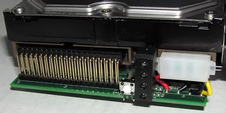 Последний представляет собой PS/2-подобную «маму», втыкаемый в него «папа» от блока питания — 4-пиновый. Решение довольно странное, учитывая склонность иголок к загибанию и предполагаемое внешним форм-фактором довольно частое и часто впопыхах подсоединение/отсоединение диска. К тому же, как показывает практика, пиэспополамные разъемы от частого перетыкания разбалтываются, и надежность соединения сильно ухудшается.