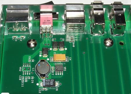 На плате также есть импульсный преобразователь напряжения для питания компонентов самой платы (и портов USB / FW),