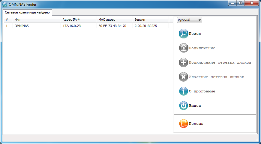 Основная часть прошивки находится во флэш-памяти, так что сразу после установки дисков и включения питания можно обратиться к web-интерфейсу для начальной конфигурации устройства. Интерфейс есть на нескольких языках, включая русский. Для поиска устройства в сети и подключения к нему можно использовать комплектную утилиту Omninas Finder.