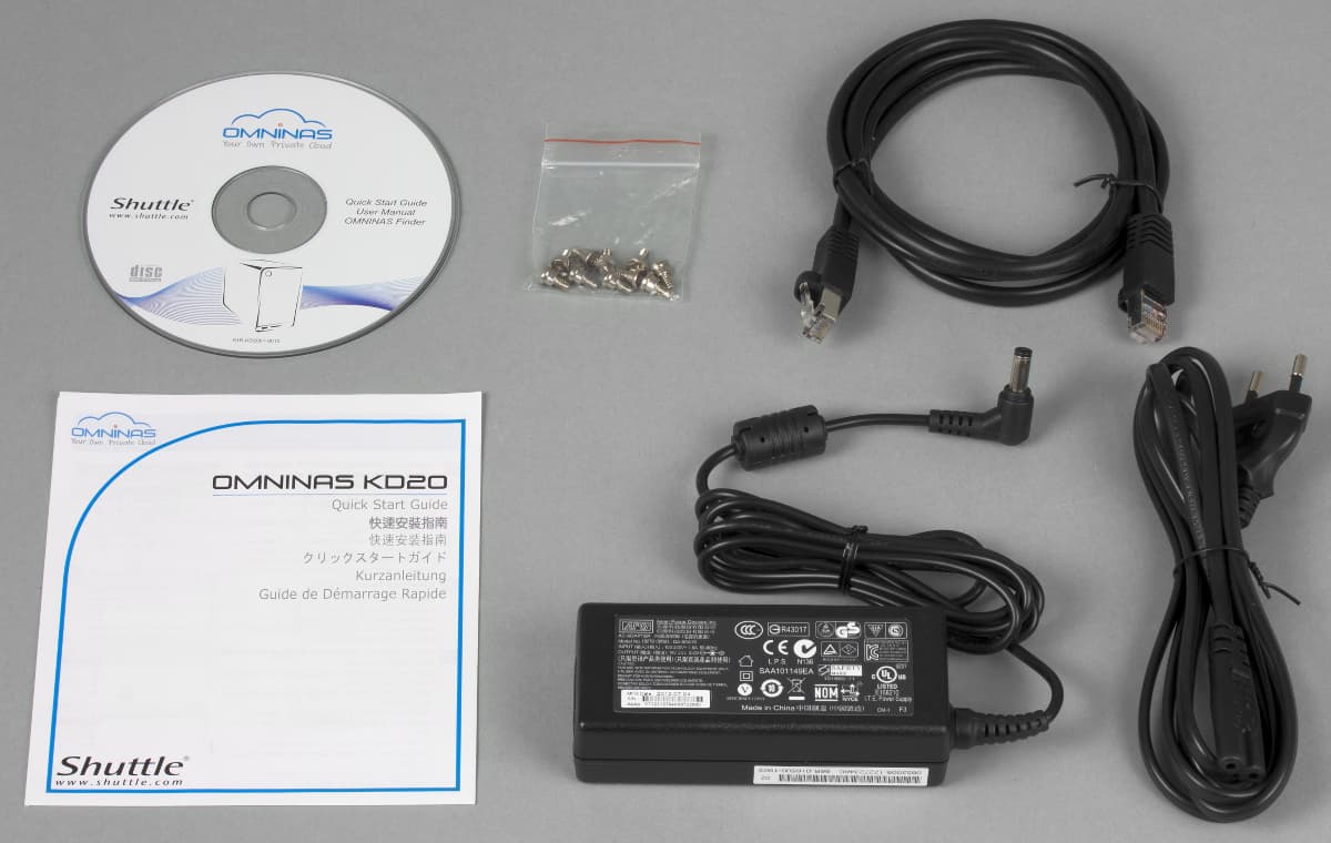Обращает на себя внимание использование «нотубучного» формата блока питания (как по форме, так и по параметрам) и винтов специальной формы для установки винчестеров. Хотя на самом деле подобрать при необходимости альтернативный вариант труда не составит. На компакт-диске находятся электронные версии документации, включая полное руководство пользователя на английском языке и программы для поиска устройства в сети для Windows и Mac OS. Обновленные версии файлов можно скачать с сайта производителя.