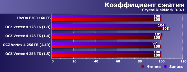 Как и было априори известно, эти контроллеры сжатием данных не занимаются. Однако в ранних версиях прошивок определенная зависимость результатов от типа данных наблюдалась. Исправленная в конечном итоге.