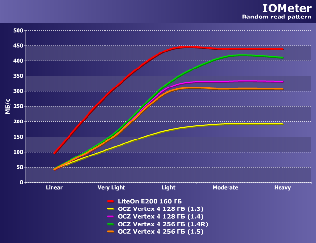 Для сравнения с испытуемыми мы взяли LiteOn E200 160 ГБ, как нельзя лучше подходящий: во-первых, емкость промежуточная, во-вторых — контроллер Marvell 88SS9174 т.е. близкий родственник Indilinx Everest 2.