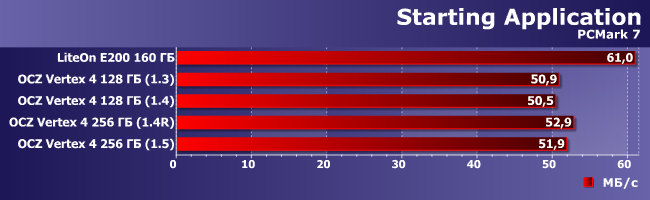 Немалое внимание было также уделено надежности хранения данных, но все это, опять же, свойства контроллера. В остальном Vertex 4 — типичный твердотельный накопитель на базе синхронной 25-нанометровой памяти с интерфейсом ONFI, коих тьмы, и тьмы, и тьмы... Но все они весьма шустры, пусть и по-разному — важен как раз контроллер. А также прошивка. В нашем же случае их две — оригинальная 1.3 (с которой эта серия и дебютировала на рынке) и более поздняя 1.4. Как это скажется — и проверим.