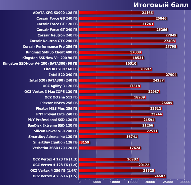 Но в общем и целом с Vertex 4 мы закончили. Равно как и с линейкой контроллеров Indilinx Everest и Everest 2: как видим, несмотря на творческую переработку наследия Marvell, такой вариант развития не может похвастаться слишком уж впечатляющими результатами — «стандартные марвелоиды» ничуть не хуже. Именно поэтому в конечном итоге основные усилия OCZ перенесла на улучшение собственных разработок Indilinx, что вылилось в Barefoot 3 — уже применяющемся в Vector и (если верить просачивающимся в прессу слухам) планирующемуся к использованию в Vertex 5. Но об этом — в следующих статьях цикла.