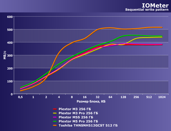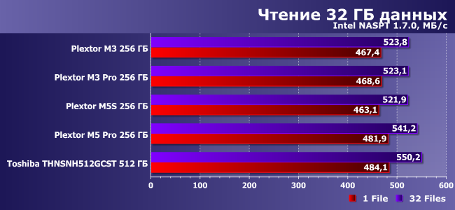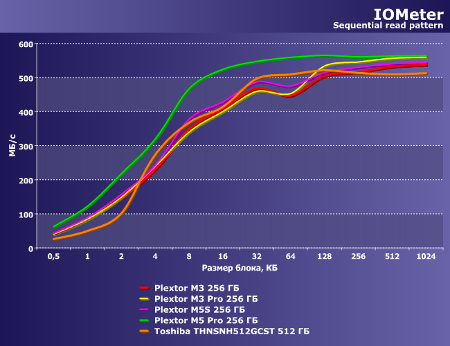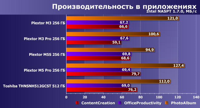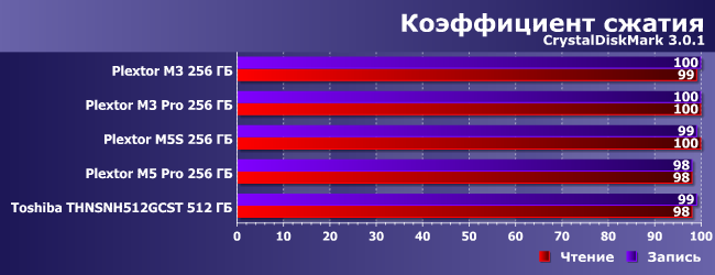 | Plextor M3 256 ГБ | Plextor M3 Pro 256 ГБ | Plextor M5S 256 ГБ | Plextor M5 Pro 256 ГБ | Toshiba THNSNH512GCST 512 ГБ |