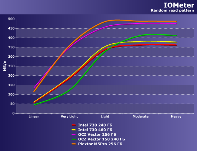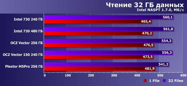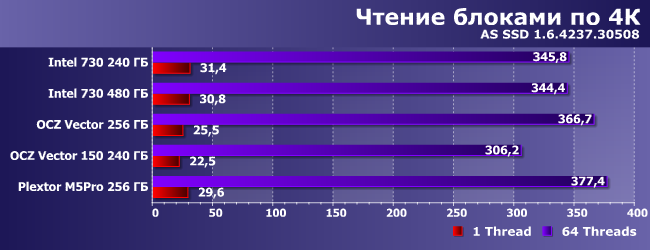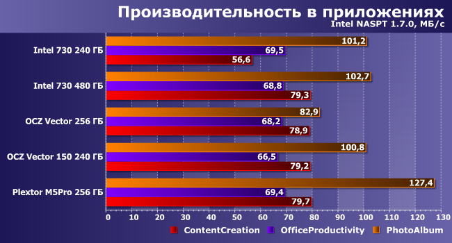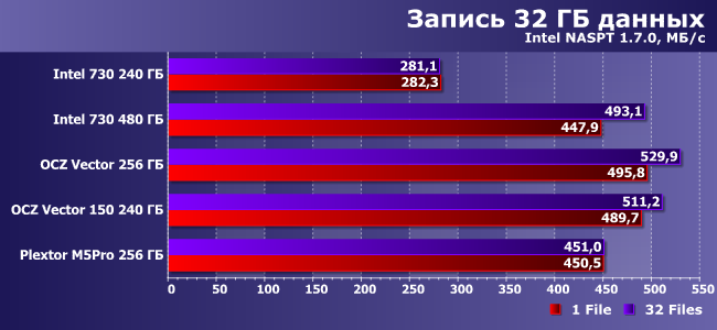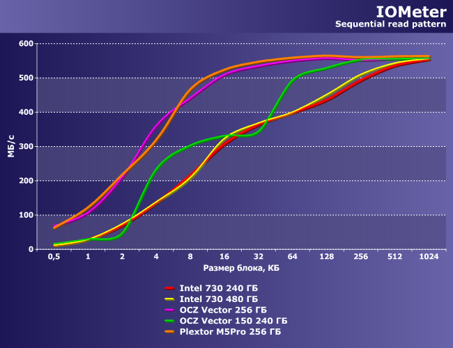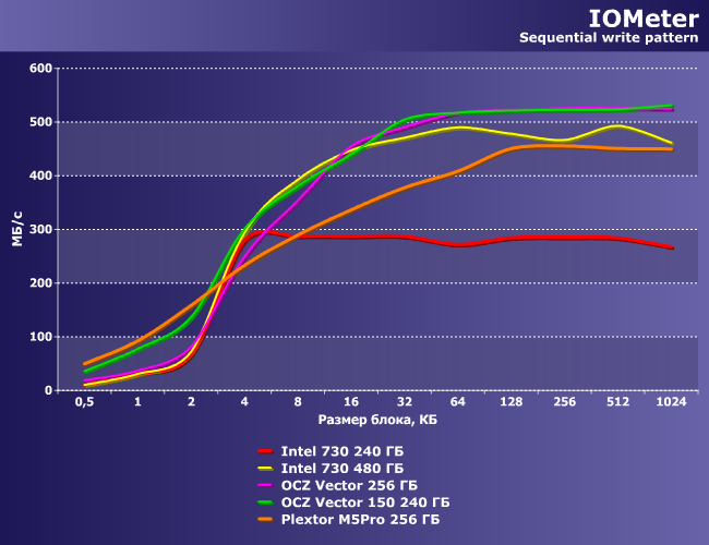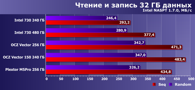 | Intel 730 240 ГБ | Intel 730 480 ГБ | OCZ Vector 256 ГБ | OCZ Vector 150 240 ГБ | Plextor M5Pro 256 ГБ |