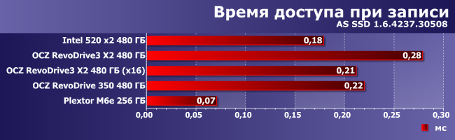 Накопители на контроллерах SandForce никогда не выдавали высокие результаты в этих тестах, а в RAID-массивах время доступа для твердотельных накопителей только увеличивается, но, в общем и целом, все полупроводниковые устройства на фоне винчестеров выглядят просто реактивными :)