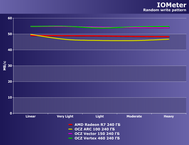 В результате на данный момент у компании фактически все равно образовалось четыре семейства накопителей. Одно из них, впрочем, относится формально к AMD, но, вопреки традициям OEM/ODM, названия фактического производителя никто не скрывает — OCZ упоминается на каждой упаковке. Две модели мы уже тестировали ранее, но сейчас решили к ним вернуться, поскольку вся четверка очень похожа. В частности, все модели, как уже было сказано, используют контроллер Indilinx Barefoot 3. Старшим, к которым относятся Vector 150 и AMD Radeon R7, досталась версия M00 с тактовой частотой 397 МГц, а более дешевые Vertex 460 и Arc 100 снабжены модификацией M10, где частота снижена до 352 МГц. Во всех накопителях установлено 512 МБ кэш-памяти типа DDR3 (в моделях емкостью 480 ГБ ее целый гигабайт), но, опять же, с разной частотой: 1600 МГц у старших и 1333 МГц у младших соответственно. А еще у них разная флэш-память: 19-нанометровая Toggle Mode компании Toshiba, но в Vector и Vertex чуть более старая, а в Radeon и Arc новейшая А19. Таким образом, общего между моделями куда больше, чем различий. К сожалению, и недостатки у них общие — в частности, все накопители OCZ довольно прожорливы (компания честно сознается, что при активной работе ее SSD могут потреблять 3,45 Вт энергии, что больше, чем у винчестеров) и не поддерживают команду DevSleep, так что не слишком подходят для использования в портативных компьютерах (кстати и весят они больше сотни граммов). Но зато быстро. Во всяком случае, и Vector 150, и Vertex 460 нас в свое время не разочаровали, а сейчас компания, по сути, обновила эти линейки. Но вот прошивки у всех моделей разные и, что естественно, несовместимые друг с другом. Поэтому возможны и различия. Какие? Вот и посмотрим. И в этом нам помогут четыре твердотельных накопителя «ходовой» емкости 240 ГБ.