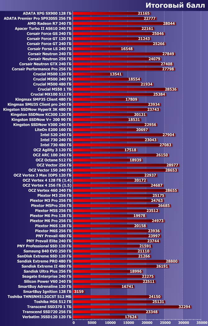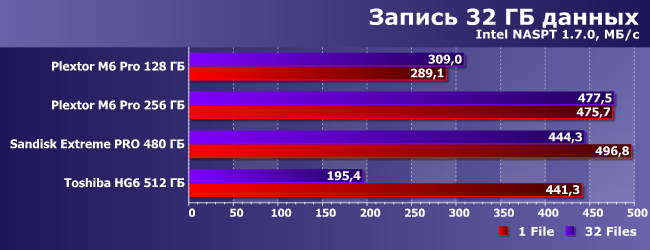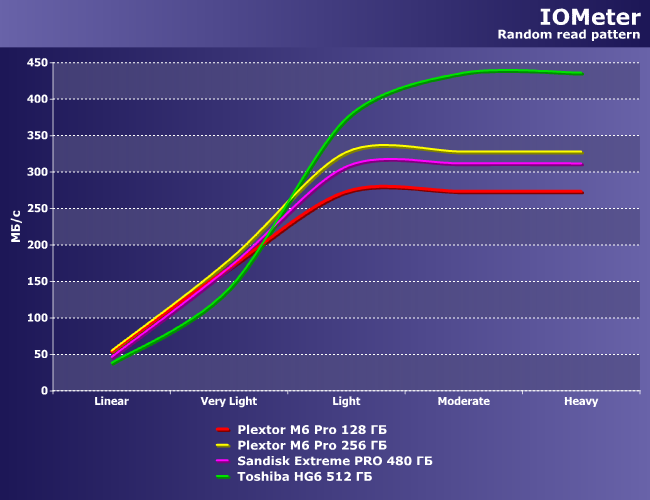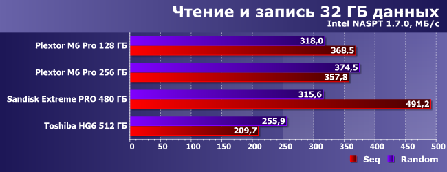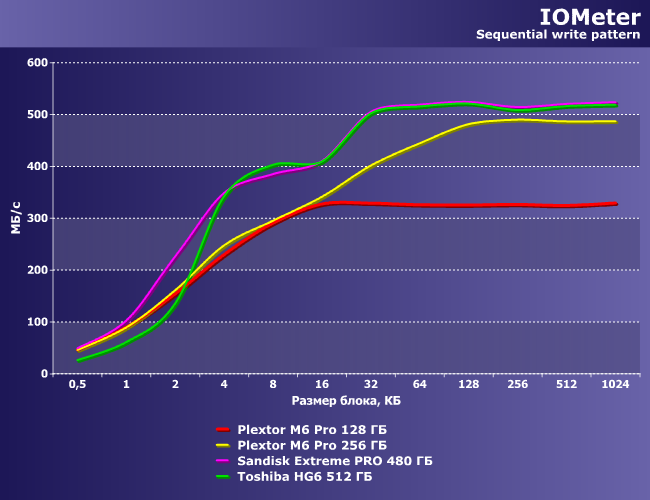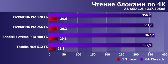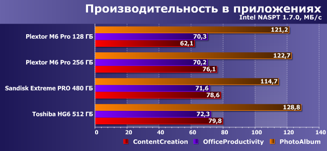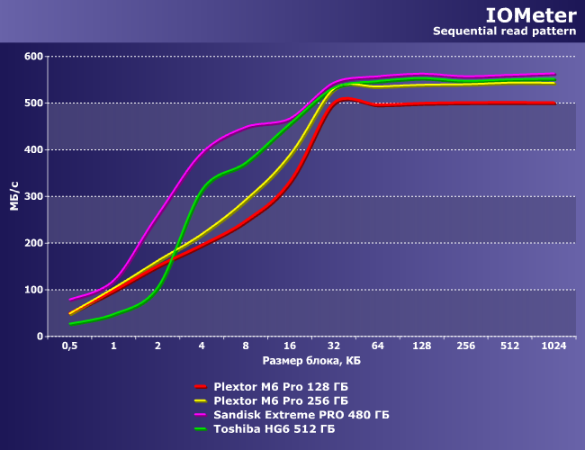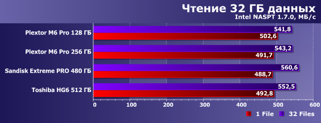 | Plextor M6 Pro 128 ГБ | Plextor M6 Pro 256 ГБ | SanDisk Extreme Pro 480 ГБ | Toshiba HG6 512 ГБ |