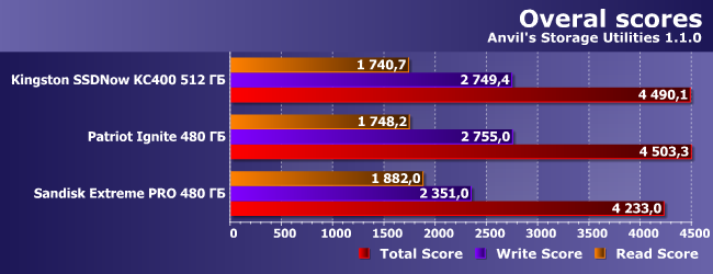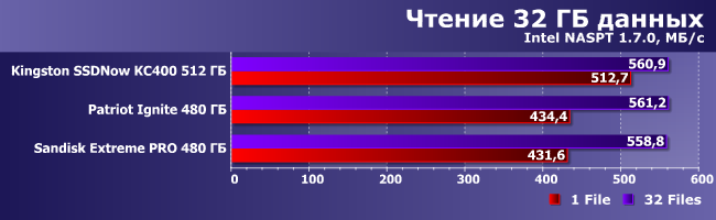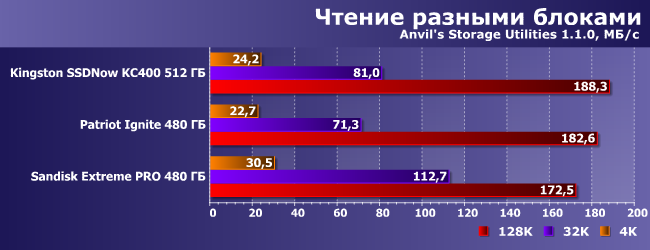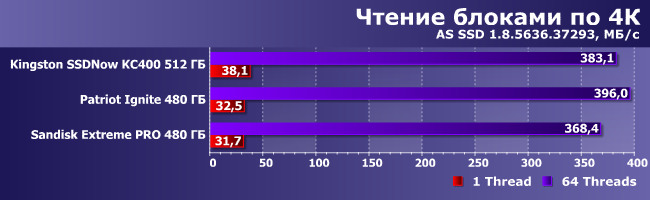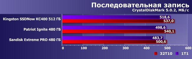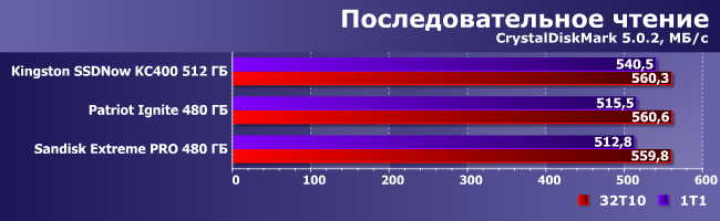 | Kingston SSDNow KC400 512 ГБ | Patriot Ignite 480ГБ | Sandisk Extreme Pro 480 ГБ |