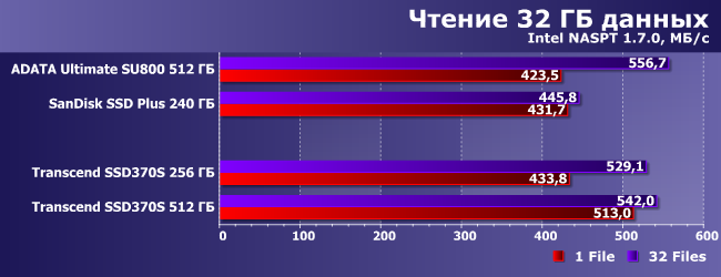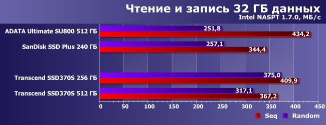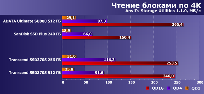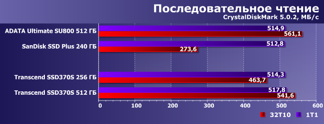 | AData Ultimate SU800 512 ГБ | SanDisk SSD Plus 240 ГБ | Transcend SSD370S 256 ГБ | Transcend SSD370S 512 ГБ | |
