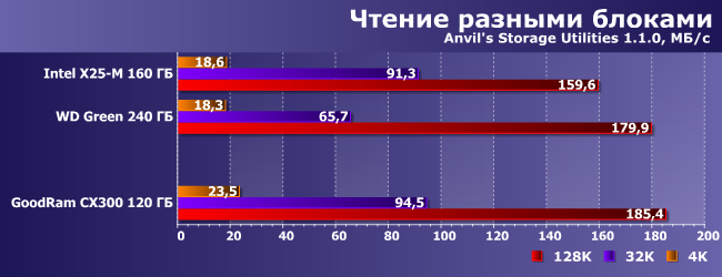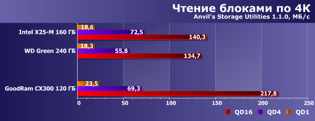 Впрочем, с ролью «устройства для чтения» накопитель GoodRam по-прежнему справляется прекрасно — это вообще хороший случай для любых более-менее современных SSD.