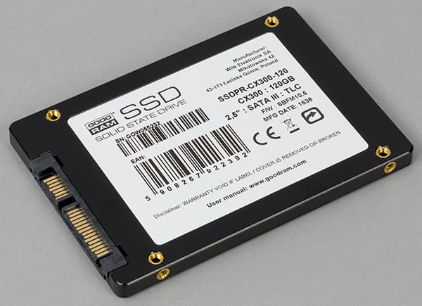 Впрочем, говорить в данном случае о «вариантах» применительно к каждому производителю не приходится: продукты под маркой GoodRam (равно как и накопители Patriot или SmartBuy), как правило, представляют собой устройства референсного дизайна самой компании Phison, причем производимые где-то на одном и том же заводе. С другой стороны, Phison обычно для каждого контроллера разрабатывает несколько референсных дизайнов, и в данном случае мы имеем связку из S11 и 15-нанометровой флэш-памяти TLC NAND производства Toshiba. Последней может быть 120, 240 или 480 ГБ, а при наличии необходимости компания обещала увеличить ее объем и до 960 ГБ. Мы, вопреки своему обыкновению, решили в этот раз тестировать самую «мелкую» модификацию просто потому, что чем больше флэша — тем менее заметна экономия на контроллере. Соответственно, приобретая накопитель на полтерабайта, обычно уже есть смысл не экономить каждую копейку, а приобрести устройство более высокого класса. А вот удел устройств минимальной емкости — хранить операционную систему и часто используемые приложения; больше на них ничего и не поместится. Но в случае бюджетных компьютеров, как правило, выбор идет не между разными SSD, а между наличием хоть какого-то и отсутствием. Поэтому «хоть какой-то» должен быть максимально дешевым — иначе не будет никакого. И вот для этого одноядерный двухканальный PS3111-S11 подходит хорошо. GoodRam, кстати, более чем серьезно позиционирует СХ300 в качестве решения для модернизации старых ноутбуков, например. Недаром в простейшем комплекте поставки этого SSD, в котором нет почти ничего, кроме собственно накопителя, нашлось все же место для рамки, увеличивающей его толщину с 7 до 9,5 мм: это актуально для «старых» дисковых отсеков как раз такого размера.
