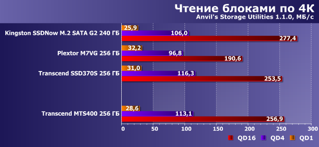 | Kingston SSDNow SATA G2 240 ГБ | Plextor M7VG 256 ГБ | Transcend SSD370S 256 ГБ | Transcend MTS400 256 ГБ |