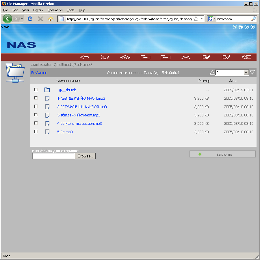 Доступ к файлам через браузер позволяет скачивать и загружать файлы, удалять и переименовывать файлы и директории. Для полного функционала не хватает только возможности копирования и переноса.
